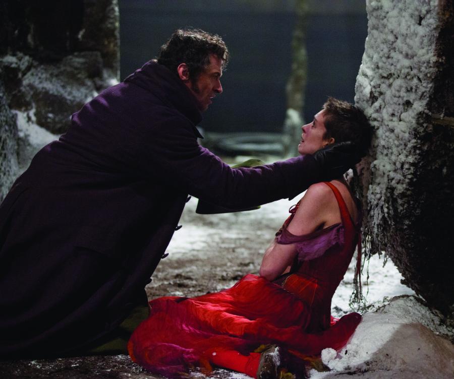 Jean Valjean (HUGH JACKMAN) embraces a very ill Fantine (ANNE HATHAWAY)