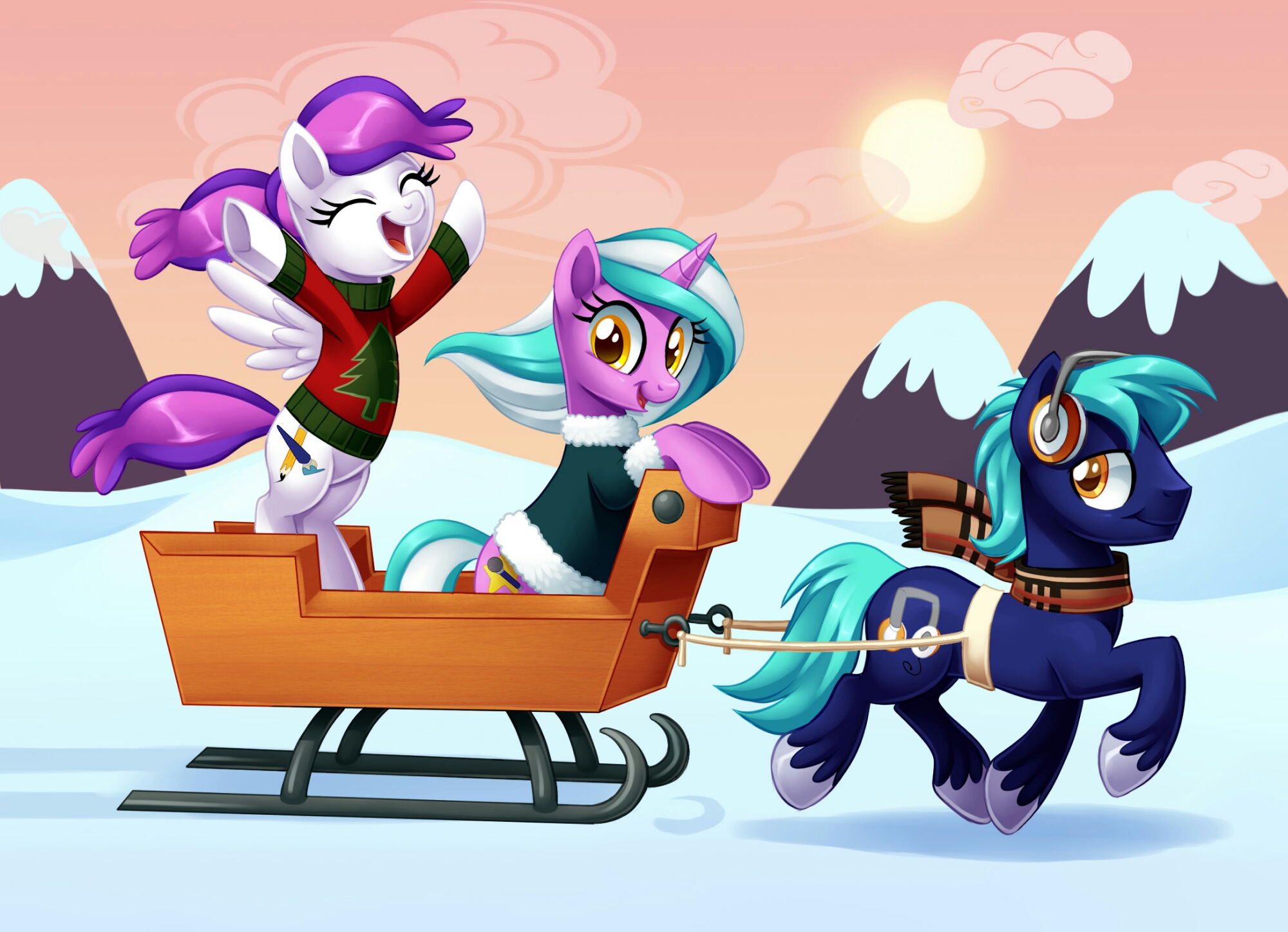 D’awwww you guys! BronyCon sent out holiday greetings, and one look at these ponys – their mascots, gussied up for the season – and I’m all in for a sleigh ride.