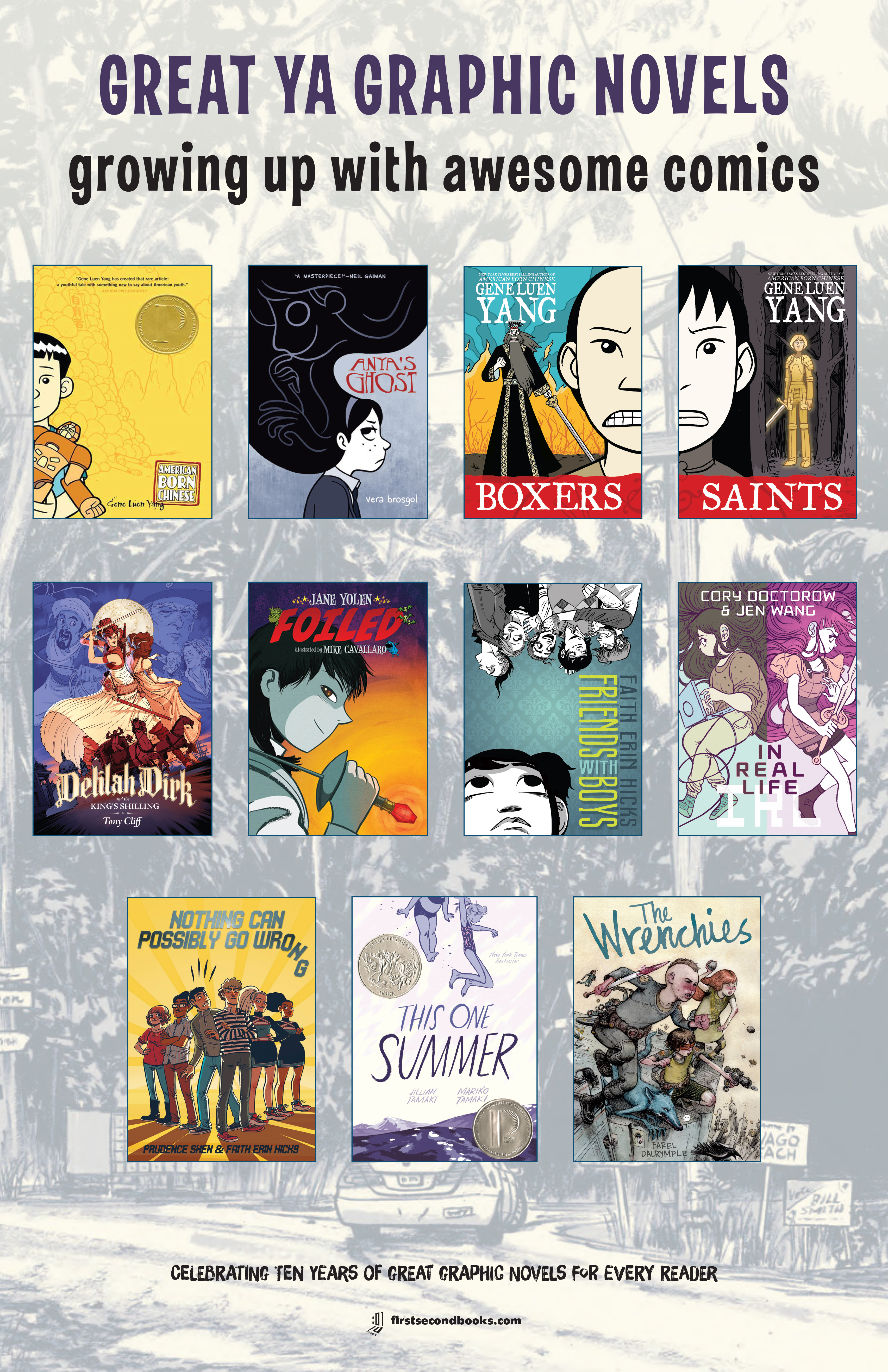 First Second, the publishing house that has given readers the graphic novels American Born Chinese, Andre the Giant, Friends With Boys, Above the Dreamless Dead, The Divine, just to name a few, is celebrating its tenth anniversary! Happy anniversary, cool publishing house that gives me stuff I like to read!