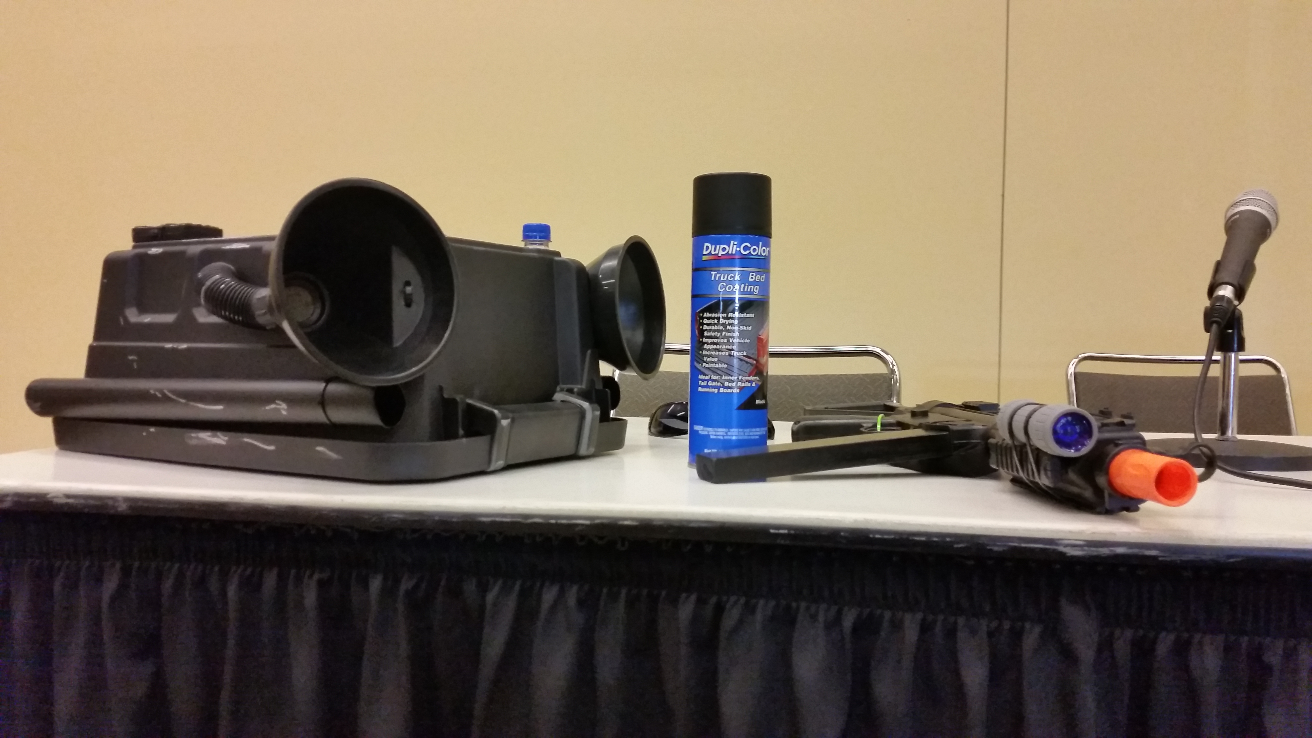 - Cosplay guns: gotta have that orange tip at the end of the gun! Make sure you either 1) tape over the existing orange on the toy gun you’re painting, or 2) paint the tip of the toy gun bright orange after you’ve painted it. Also remember to disable it; remove triggers, springs and anything that can be though to be able to send something into somebody else.
