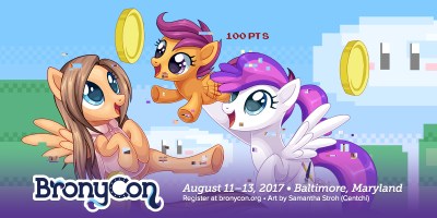 To register for this event, visit BronyCon’s registration page. Badges for BronyCon will cost more at the door, so don’t wait! Also make sure you are following BronyCon on Facebook, Twitter, Tumblr, and Google+ to be the first to hear our latest announcements.