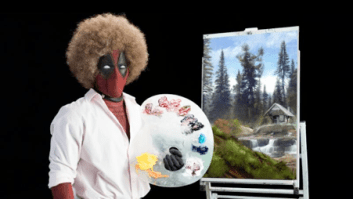 Happy little…Deadpool?  That’s right y’all.  Deadpool the artist, drawing happy little trees, with a happy little afro.