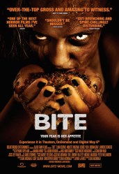 Same goes for anyone who’s thinking about watching this for a maximum level gross out. Some Fantasia Film Festival moviegoers vomited and/or ran out of the theater on its premiere screening? Me, I ate a candy bar. Tomato, bloody tomahto. Bite is fun , but if you’re a body horror dilettante, do prepare yourself. Fans of the genre will enjoy the hell out of this quick creeper though. I’d file this somewhere in-between The Fly and Alien. Not as bloody as Event Horizon, nor as crazy as Slither, but for bio-centric body horror, it’s a helluva good time.